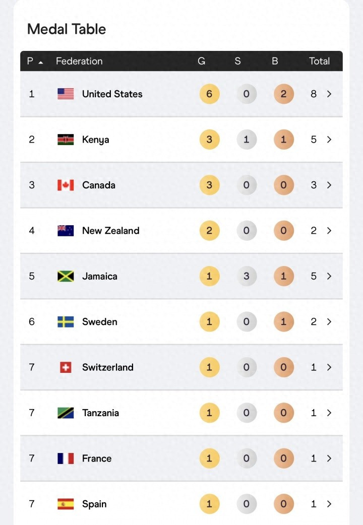 直播吧09月17日讯 2025东京寰宇田径锦标赛第四个比赛日阻挡,20个名堂仍是阻挡角逐。最新的世锦赛奖牌榜,好意思国6金2铜高居榜首,肯尼亚3金1银1铜第二,中国1银1铜仍居第15,韩国1银第16,人日本得益1块铜牌上榜,亚洲仅中日韩上榜。