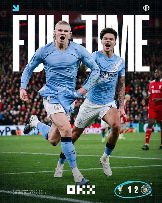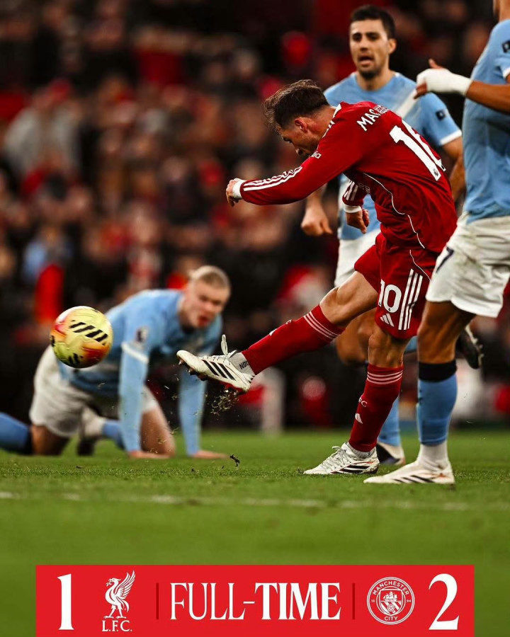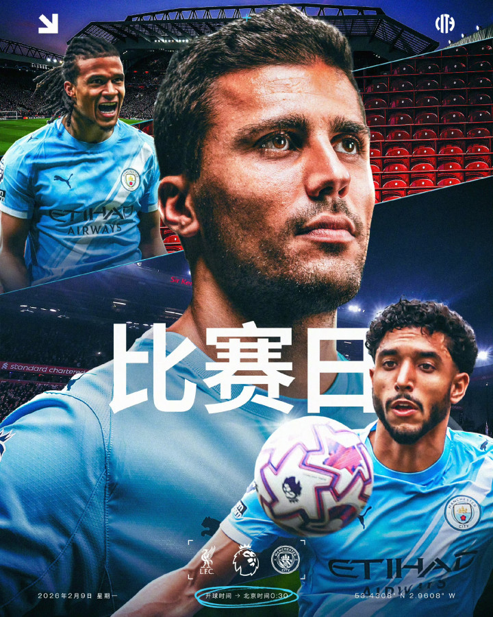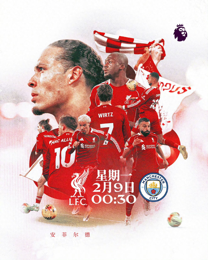 北京时间2月9日00:30,英超联赛第25轮,利物浦在主场安菲尔德球场迎战曼彻斯特城。上半场哈兰德失单刀,赤军零射正,半场戒指,两边0-0战平。下半场埃基蒂克失良机,索博狂妄球宇宙波+补时染红,B席扳平,哈兰德传射+点球绝杀。最终曼城客场2-1逆转双杀利物浦,曼城联赛3轮不败,利物浦近7轮仅1胜,曼城积50分位居第2距榜首阿森纳6分,利物浦积39分名列第6距前四5分。