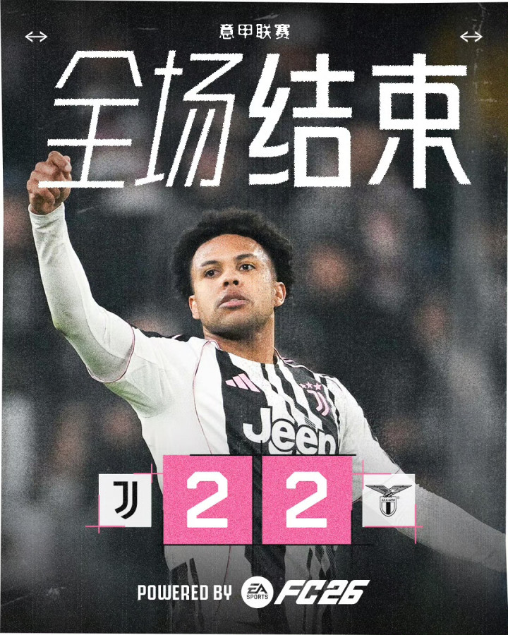 北京时间2月9日03:45,意甲联赛第24轮,尤文在主场安联竞技场迎战拉皆奥。上半场补时阶段佩德罗破门首开记录。尤文半场0-1过期拉皆奥。易边再战,伊萨克森破门扩猛向上上风,麦肯尼扳回一城,卡卢卢补时读秒绝平。最终尤文2-2战平拉皆奥,延续本赛季联赛主场不败势头,当今尤文仍名次联赛第四。