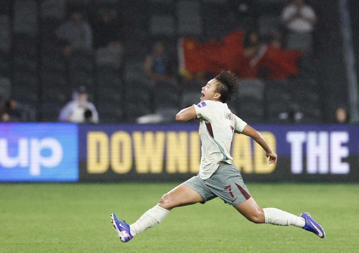 王霜在进球后庆祝。(泉源 新华社)