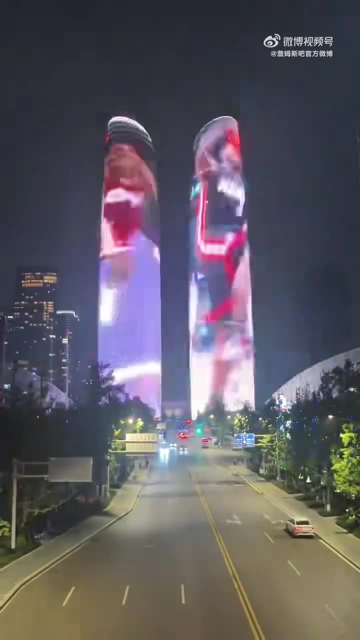 据多位网友及“詹姆斯吧官方微博”爆料,成皆地标性诞生金融城“双子塔”今晚为理睬詹姆斯中国行点亮灯光秀,播放了詹姆斯糊口中的精彩骤然,并展示了詹姆斯青少年期间与如本年过四旬的形象相视而望的场景。